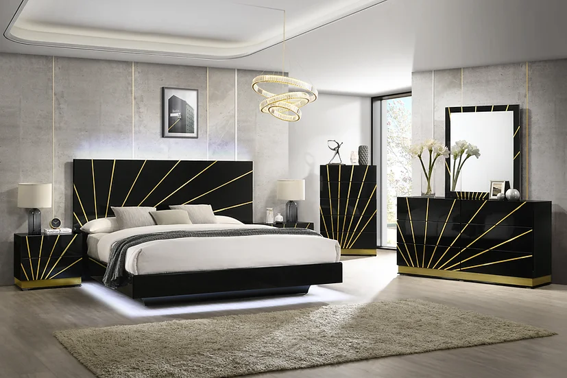 Color: Black/Gold – Material: High gloss -*LED on HEADBOARD*-*LED on PLATFORM*
