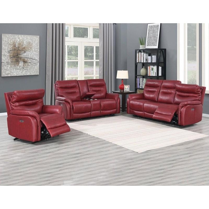 The Fortuna Power Leather Recliner Living Room Set is available in a rich red color option. The vibrant red hue adds a bold, contemporary touch to your living space while maintaining the luxurious feel of high-quality leather. The sleek, power reclining features combined with the bold red color make this set a standout in any room, offering both comfort and a stylish aesthetic.