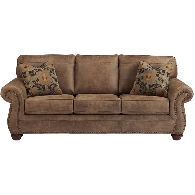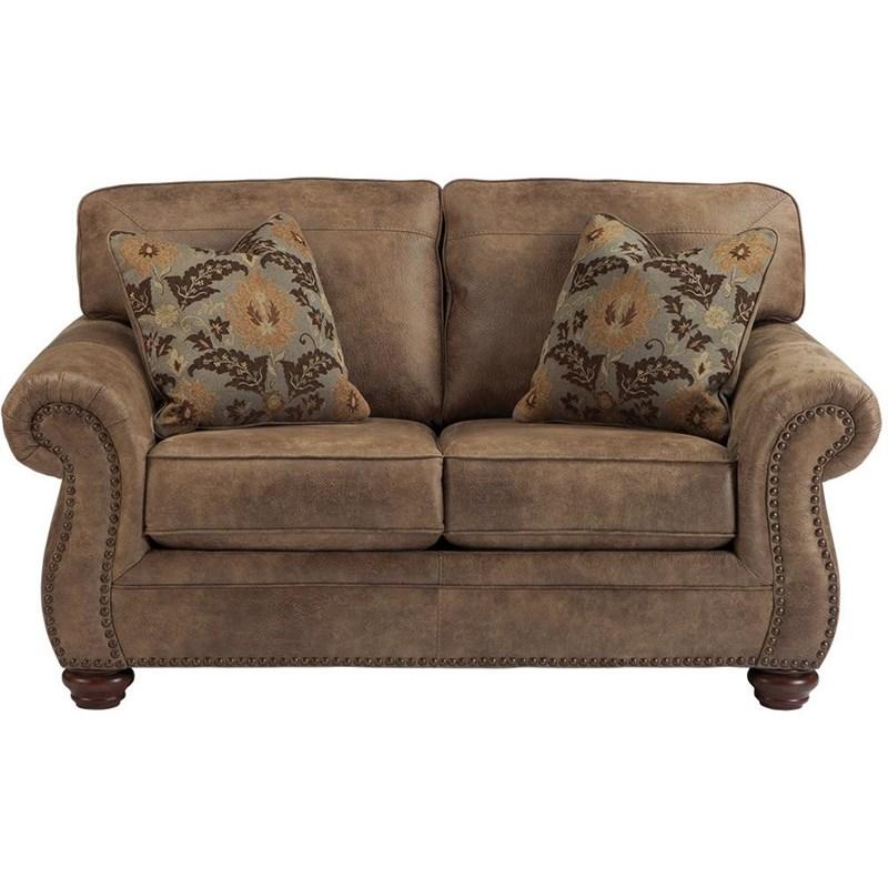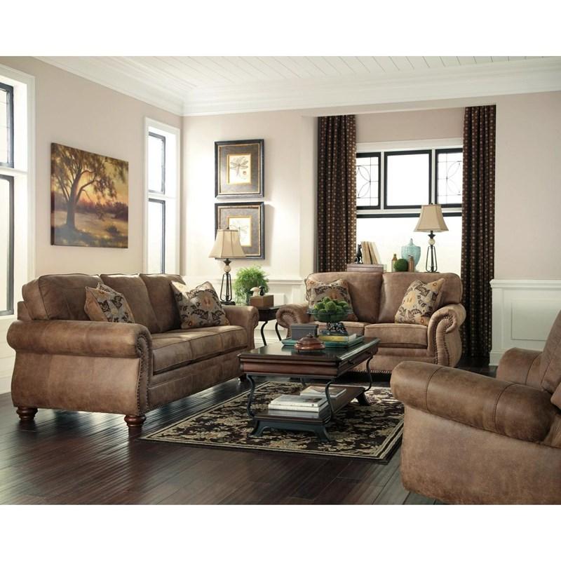 Bring timeless elegance and rustic charm to your home with the Larkinhurst 2-Piece Living Room Set. Designed to mimic the rich look of weathered leather without the hefty price tag, this set includes a stylish sofa and loveseat wrapped in a warm, earthy faux leather upholstery. Generously padded cushions, jumbo window-pane stitching, and supportive roll arms ensure luxurious comfort, while the turned feet add a classic touch of sophistication. Perfect for those who appreciate traditional design with a cozy, inviting feel.