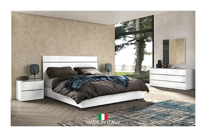 This comprehensive package includes a King bed, dresser, mirror, and nightstand, with the option to upgrade to a Queen size bed. (Chest Sold Separately) Experience the unparalleled craftsmanship and timeless beauty of Italian design with this exceptional bedroom set, perfect for elevating the ambiance of your modern living space.