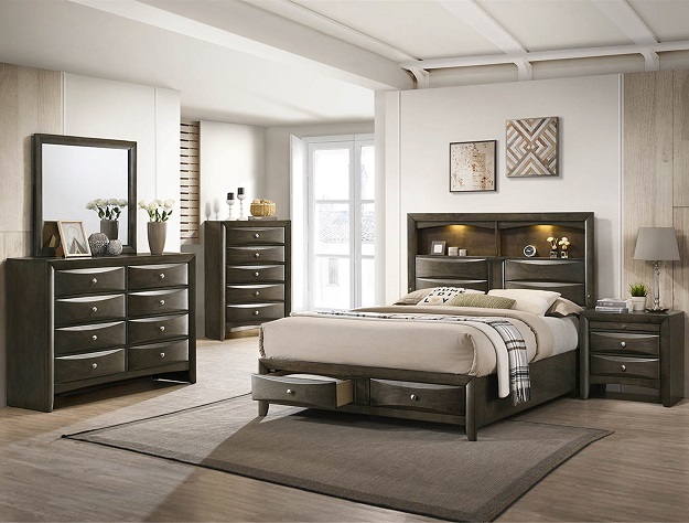 This Bedroom set is a stylish and sophisticated suite that brings contemporary style to your master or guest bedroom. A rich transitional design and exquisite details come together to create the ultimate in the grand style as well as storage of the Fallon Bedroom Collection.