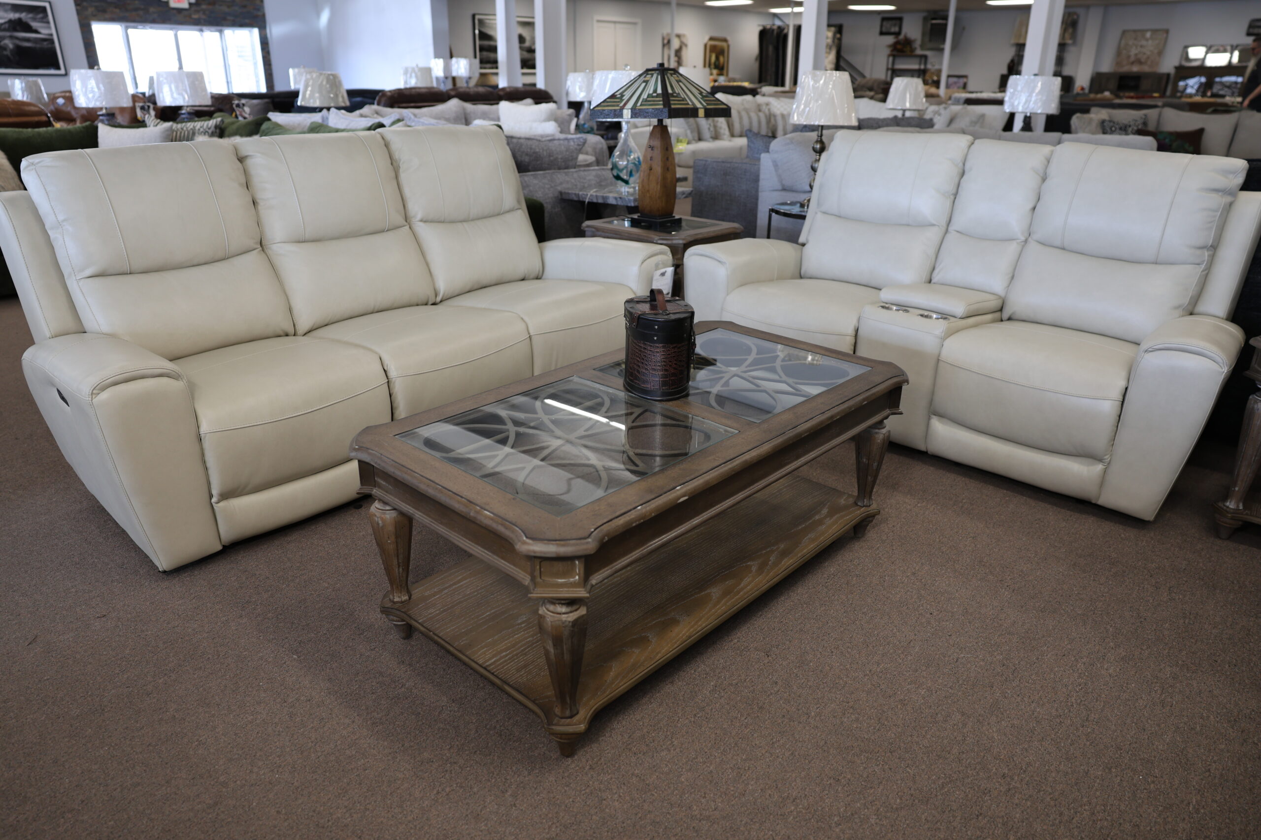 Elevate your space with the Sierra Reclining Sofa and Loveseat set, wrapped in buttery-soft ivory leather-look upholstery. This modern duo delivers the perfect mix of elegance and comfort, featuring power recliners and a center console with cupholders.